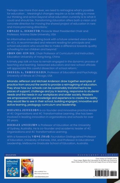Working away from trends in government policy, this book takes a future-oriented re-imagining of schools with a focus on four innate human capacities: collaboration, critical reflection, communication and creativity. Miranda Jefferson and Michael Anderson draw together examples of practice from around the world to provide a reimagining of education. They show how our schools can be sustainably transformed to be places of support, challenge and joy in learning, responsive to students' needs and the needs in our workplaces and wider society. Readers are empowered to use knowledge and experience to create the reality they would like to see in their school, building engaged, innovative and active learning, pedagogy curriculum and leadership. Key ideas are summarised at the end of each chapter along with an extensive referencing and bibliography, and a supporting glossary.