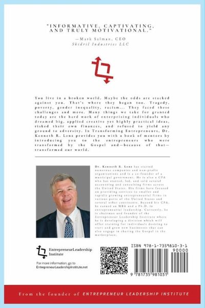 You live in a broken world. Maybe the odds are stacked against you. That's where each Christian entrepreneur profiled in this book began too. Tragedy, poverty, gender inequality, racism.... They faced these challenges and more. Many things we take for granted today are the hard work of enterprising individuals who dreamed big, applied creative yet highly practical ideas, risked their own finances, and refused to yield any ground to adversity. In Transforming Entrepreneurs Dr. Kenneth R. Lenz provides you with a book of Christian mentors by introducing you to the entrepreneurs who were transformed by the Gospel and - because of that - transformed our world. The small business and nonprofit enterprises they founded, which grew into large, impactful organizations, still change society today.