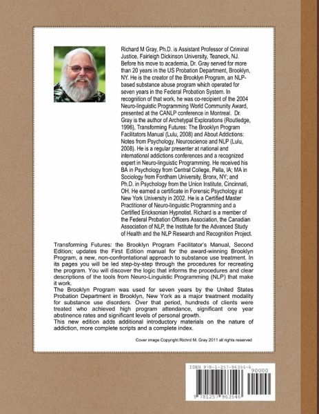 Transforming Futures: the Brooklyn Program Facilitator's Manual, Second Edition; updates the First Edition manual for the award-winning Brooklyn Program, a new, non-confrontational approach to substance use treatment. In its pages you will be led step-by-step through the procedures for recreating the program. You will discover the logic that informs the procedures and clear descriptions of the tools from Neuro-Linguistic Programming (NLP) that make it work. The Brooklyn Program was used for seven years by the United States Probation Department in Brooklyn, New York as a major treatment modality for substance use disorders. Over that period, hundreds of clients were treated who achieved high program attendance, significant one year abstinence rates and significant levels of personal growth. This new edition adds additional introductory materials on the nature of addiction, more complete scripts and a complete index.