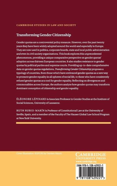 ska-Simon; Part III. Gender Quotas as Corrective Equality Remedies: 9. Quota contagion in Germany: diffusion, derailment, and the quest for parity democracy Sabine Lang; 10. The Austrian paradox: the challenges to transform a conservative gender regime Nora Gresch and Birgit Sauer; Part IV. Gender Quotas as Accessory Equality Measures: 11. The 'natural' prolongation of the Norwegian gender equality policy institution Mari Teigen; 12. Gender equality without legislated quotas in Sweden Lenita Freidenvall; 13. Gender equality without gender quotas: dilemmas in the Danish approach to gender equality and citizenship Lise Rolandsen Agustín, Birte Siim and Anette Borchorst; Conclusion. Assessing the transformative potential of gender quotas for gender equality and democratic citizenship Éléonore Lépinard and Ruth Rubio Marín.