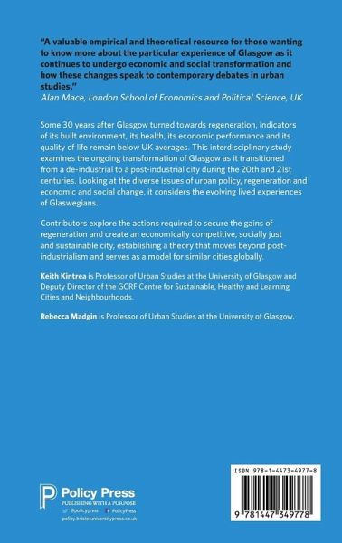 This interdisciplinary study examines the transformation of Glasgow as it has transitioned from a de-industrial to a post-industrial city during the 20th and 21st centuries. A broad range of contributors analyse diverse issues of urban policy, regeneration, and economic and social change to consider the necessary actions required to secure the gains of regeneration and create an economically competitive and socially just city.