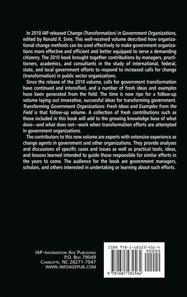 A volume in Contemporary Human Resources Management Issues, Challenges and Opportunities In 2010 IAP released Change (Transformation) in Government Organizations, edited by Ronald R. Sims. This well-received volume described how organizational change methods can be used effectively to make government organizations more effective and efficient and better equipped to serve a demanding citizenry. The 2010 book brought together contributions by managers, practitioners, academics, and consultants in the study of international, federal, state, and local government efforts to respond to increased…mehr