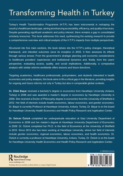 Dr. Dilek Bäar received a bachelor's degree in economics from Hacettepe University (Ankara, Turkey) in 2006 and was awarded a master's degree in economics by Hacettepe University in 2008. She received a Doctor of Philosophy degree in economics from the University of Sheffield in 2012. Her field of interests include health economics, labour economics, and gender economics. Dr. Bäar is currently Professor at Hacettepe University, Ankara, Turkey. Dr. Bäar is on the board for Hacettepe University Health Economics and Health Policy Research and Application Center. Dr. Selcen Öztürk completed her undergraduate education at Gazi University Department of Economics in 2006 and her master's degree at Hacettepe University Department of Economics in 2008. Dr. Öztürk completed her Ph.D. in the field of Economics at the University of Sheffield in 2012. Since 2012 she has been working at Hacettepe University, where her field of interests include gender economics, regional economics, labour economics, and health economics. Dr. Öztürk is currently a professor at Hacettepe University, Ankara, Turkey. Dr. Öztürk is on the board for Hacettepe University Health Economics and Health Policy Research and Application Center.
