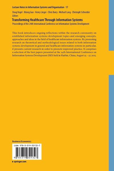This book introduces ongoingreflections within the research community on established information systemsdevelopment topics and emerging concepts, approaches and ideas in the field ofhealthcare information systems. By promoting research on theoretical andmethodological issues related to both information systems development ingeneral and healthcare information systems in particular, it presents currentresearch in order to promote improved practice. It comprises a selection of thebest papers presented at the 24th International Conference on InformationSystems Development (ISD) held in Harbin, China, August 25 - 27, 2015.…mehr