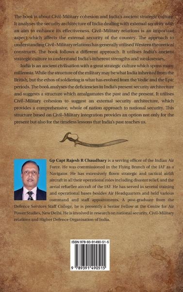 The book is about Civil-Military cohesion and India's ancient strategic culture. It analyses the security architecture of India dealing with external security with an aim to enhance its effectiveness. Civil-Military relations is an important aspect which affects the external security of the country. The approach to understanding Civil-Military relations has generally utilised Western theoretical constructs. The book follows a different approach. It utilises India's ancient strategic culture to understand India's inherent strengths and weaknesses. India is an ancient civilisation with a great strategic culture which spans many millennia. While the structure of the military may be what India inherited from the British, but the ethos of soldiering is what has evolved from the Vedic and the Epic periods. The book analyses the deficiencies in India's present security architecture and suggests a structure which amalgamates the past and the present. It utilises Civil-Military cohesion to suggest an external security architecture, which provides a comprehensive, whole of nation approach to national security. This structure based on Civil-Military integration provides an option not only for the present but also for the timeless lessons that India's past teaches us. Gp Capt Rajesh R Chaudhary is a serving officer of the Indian Air Force. He was commissioned in the Flying Branch of the IAF as a Navigator. He has extensively flown strategic and tactical airlift aircraft in all their operational roles including disaster relief, and the aerial refueller aircraft of the IAF. He has served in several training and operational bases besides Air Headquarters and held various command and staff appointments. A post-graduate from the Defence Services Staff College, he is presently a Senior Fellow at the Centre for Air Power Studies, New Delhi. He is involved in research on national security, Civil-Military relations and Higher Defence Organisation of India.