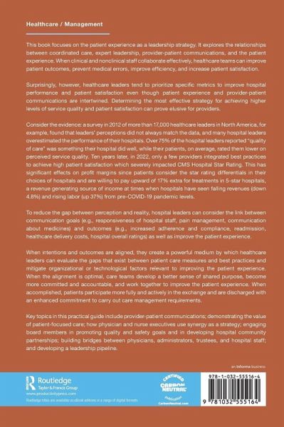 This book focuses on the patient experience as a leadership strategy. It explores the relationships between coordinated care, expert leadership, provider-patient communications, and the patient experience.