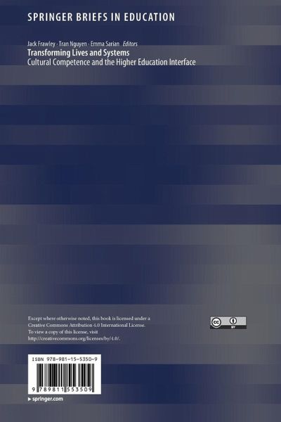 This open access book explores the transformative experiences of participants in the University of Sydney's National Centre for Cultural Competence (NCCC) programs. The establishment of the NCCC was viewed as a critical point of departure for developing an institution-wide agenda of cultural competence. The NCCC's work since its inception reflects efforts to lay important foundations for cultural change at the University. With the ultimate aim of establishing cultural competence as an agent for transformational change and social justice education, the NCCC has steadily expanded its research…mehr