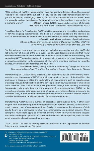 Transforming NATO: New Allies, Missions, and Capabilities, by Ivan Dinev Ivanov, examines the three dimensions of NATO's transformation since the end of the Cold War: the addition of a dozen new allies; the undertaking of new missions such as peacekeeping, crisis response, and stabilization; and the development of new capabilities to implement these missions. The book explains these processes through two mutually reinforcing frameworks: club goods theory and the concept of complementarities. NATO can be viewed as a diverse, heterogeneous club of nations providing collective defense to its members, who, in turn, combine their military resources in a way that enables them to optimize the Alliance's capabilities needed for overseas operations. Transforming NATO makes a number of theoretical contributions. First, it offers new insights into understanding how heterogeneous clubs operate. Second, it introduces a novel concept, that of complementarities. Finally, it re-evaluates the relevance of club goods theory as a framework for studying contemporary international security. These conceptual foundations apply to areas well beyond NATO. They provide useful insights into understanding the operation of transatlantic relations, alliance politics, and a broader set of international coalitions and partnerships. This update in April 2013 covers new developments related to NATO's transformation after this book was originally published: http://homepages.uc.edu/~ivanovid/pdfs/book_update.pdf