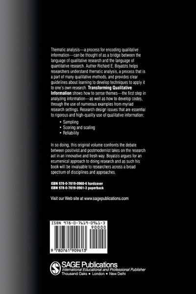 This book helps students and researchers understand thematic analysis as a process that is a part of many qualitative methods, and provides clear guidance about learning to develop techniques to apply to research.