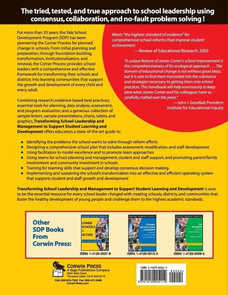 `A unique feature of James Comer's school improvement is the comprehensiveness of his ecological approach. It necessarily involves all of the key players in each individual school setting and provides guidelines for their interaction. . . .The domain of educational change is not without good ideas, but it is rare to find them translated into the substance and strategies necessary to getting them into school practices. This handbook will help enormously to keep alive what James Comer and his colleagues have so carefully crafted over the years' - John I Goodlad, President, Institute for Educational Inquiry For more than 35 years, the Yale School Development Program (SDP) has been pioneering the Comer Process for planned change in schools. From initial planning and preparation, through foundation building, transformation, institutionalization, and renewal, the Comer Process provides school leaders with a comprehensive and effective framework for transforming their schools and districts into learning communities that support the growth and development of every child and every adult.