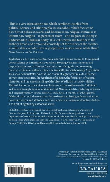 Tajikistan is a key state in Central Asia, and will become crucial to the regional power balance as it transitions away from Soviet government systems and responds to the rise of Chinese financial power alongside the continuing presence of Russian military might and instability in neighboring Afghanistan. This book demonstrates how the Soviet atheist legacy continues to influence current state structures, the regulation of religion, the formation of national identities, and the understanding of the place of religion in society. Helene Thibault focuses on the differences between secular nationhood in Tajikistan, and an increasingly popular and influential Muslim identity. Featuring extensive and original primary-source material, including 12 months of ethnographic fieldwork, Thibault demonstrates the profound and lasting influence of Soviet power structures and attitudes, and how secular and religious identities clash in a context of tightening authoritarianism.