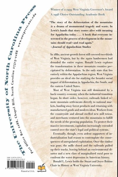 In 1880, ancient-growth forest still covered two-thirds of West Virginia, but by the 1920s lumbermen had denuded the entire region. Ronald Lewis explores the transformation in these mountain counties precipitated by deforestation. As the only state that lies entirely within the Appalachian region, West Virginia provides an ideal site for studying the broader social impact of deforestation in Appalachia, the South, and the eastern United States. Most of West Virginia was still dominated by a backcountry economy when the industrial transition began. In short order, however, railroads linked remote mountain settlements directly to national markets, hauling away forest products and returning with manufactured goods and modern ideas. Workers from the countryside and abroad swelled new mill towns, and merchants ventured into the mountains to fulfill the needs of the growing population. To protect their massive investments, capitalists increasingly extended control over the state's legal and political systems. Eventually, though, even ardent supporters of industrialization had reason to contemplate the consequences of unregulated exploitation. Once the timber was gone, the mills closed and the railroads pulled up their tracks, leaving behind an environmental disaster and a new class of marginalized rural poor to confront the worst depression in American history.