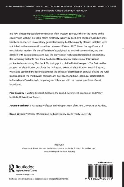 It is now almost impossible to conceive of life in western Europe, either in the towns or the countryside, without a reliable mains electricity supply. By 1938, two-thirds of rural dwellings had been connected to a centrally generated supply, but the majority of farms in Britain were not linked to the mains until sometime between 1950 and 1970. Given the significance of electricity for modern life, the difficulties of supplying it to isolated communities, and the parallels with current discussions over the provision of high-speed broadband connections, it is surprising that until now there has been little academic discussion of this vast and protracted undertaking. This book fills that gap. It is divided into three parts. The first, on the progress of electrification, explores the timing and extent of electrification in rural England, Wales and Scotland; the second examines the effects of electrification on rural life and the rural landscape; and the third makes comparisons over space and time, looking at electrification in Canada and Sweden and comparing electrification with the current problems of rural broadband.