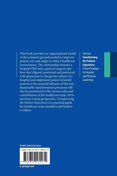 This book provides an organizational model of the common ground needed to improve patient care and adapt to today's healthcare environment. The relationship between a hospital CEO and a general surgeon and how they aligned, motivated and partnered with physicians to change the culture of a hospital and implement patient oriented systems is the essential element of this text. Sustainable transformation processes will also be presented for the various roles and contributions of the healthcare team. Written from a team perspective, Transforming the Patient Experience is a practical guide for healthcare team members and leaders to follow.