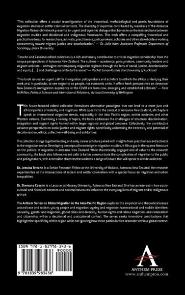 ori and Immigration; Matthew Wynyard; Chapter Two Relational Ethics, Settler Colonialism and the Transformation of Migration in Aotearoa New Zealand; Francis Collins; Chapter Three Desirability and Human Capital Privilege in the Politics of Migration in Aotearoa; Jessica Terruhn; commentary - Expensive Burdens: How Aotearoa New Zealand's Immigration Policy Undermines Disabled People's Human Rights and Ideas for Taking a more Equitable Approach; Umi Asaka, Juliana Carvalho, Erin Gough and Áine Kelly-Costello; Interview - Race Relations and Migration in Aotearoa New Zealand - An Interview with Race Relations Commissioner Meng Foon; Part Two - Humanising the Politics of Transnational Mobility; Chapter Four Trans-Tasman Mobilities in and through Aotearoa New Zealand: Extending Family, Home and Work across the Tasman; Ruth (Lute) Faleolo; Chapter Five Multigenerational Dynamics and Neoliberal Family Immigration Policy Regimes: The Case of New Chinese Immigrant Families in Aotearoa/New Zealand; Guanyu Jason Ran; Chapter Six Migrants for All Seasons? Impacts of Border Closures on Recognised Seasonal Employers and Pacific Workers in New Zealand; Charlotte Bedford, Richard Bedford and Heather Nunns; Chapter Seven Off the Team: Solidarities and Exclusions in Pandemic Aotearoa New Zealand; Nicole Pepperell and Duncan Law; Commentary - Migrant Lives Matter - A Call to End Precarity and Exploitation; Anu Kaloti; Part Three - Building Solidarities for Migrant Rights and Belonging; Chapter Eight Building Enduring Relationships for a Shared Sense of Belonging: Culturally Derived Solidarities between Muslim Migrants and M