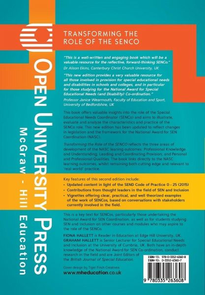 This book offers valuable insights into the role of the Special Educational Needs Coordinator (SENCo) and aims to illustrate, evaluate and analyze the characteristics and practice of the SENCo role. This new edition has been updated to reflect changes in legislation and the framework for the National Award for SEN Coordination (NASC). Transforming the Role of the SENCO reflects the three areas of development of the NASC leaning outcomes: Professional Knowledge and Understanding; Leading and Coordinating Provision; and Personal and Professional Qualities. The book links directly to the NASC learning outcomes, whilst remaining both cutting edge and relevant to 'real world' practice. Key features of this second edition include: ¿ Updated content in light of the SEND Code of Practice 0 - 25 (2015) ¿ Contributions from thought leaders in the field of SEN and Inclusion ¿ Vignettes offering clear, practical, and well theorized examples of the work of SENCos, based on conversations with stakeholders currently involved in the field. This is a key text for SENCos, particularly those undertaking the National Award for SEN Coordination, as well as for students studying SEN and Inclusion on other courses and modules who may aspire to the role of the SENCo.
