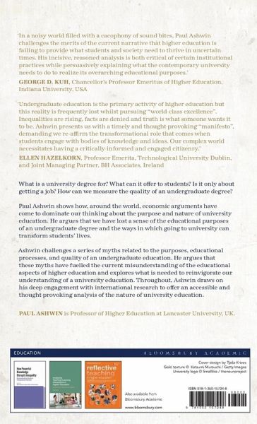 What is a university degree for? What can it offer to students? Is it only about getting a job? How can we measure the quality of an undergraduate degree? Paul Ashwin shows how, around the world, economic arguments have come to dominate our thinking about the purpose and nature of university education. He argues that we have lost a sense of the educational purposes of an undergraduate degree and the ways in which going to university can transform students' lives. Ashwin challenges a series of myths related to the purposes, educational processes, and quality of an undergraduate education. He argues that these myths have fuelled the current misunderstanding of the educational aspects of higher education and explores what is needed to reinvigorate our understanding of a university education. Throughout, Ashwin draws on his deep engagement with international research to offer an accessible and thought-provoking analysis of the nature of university education.