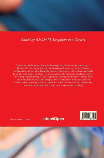 Transfusion Medicine and Scientific Developments focuses on unknown aspects of blood cells and transfusion practice. Blood transfusion medicine has become a sophisticated and specialized field of medicine. Some aspects will be discussed in this book. The book has been divided into three sections. The first section includes chapters describing the immunological and coagulation-assisting functions of red blood cells and methods to measure their life span. The second section discusses the role of platelets in inflammatory processes. The third section reviews functional dose of RBC transfusions and transfusion practice in various clinical settings.