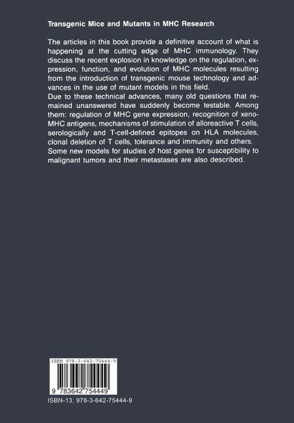 I. Mutant Models of MHC Antigen Expression and Function (H-2).- Spontaneous Frequency of H-2 Mutations.- Microgene Conversion in the Evolution of the MHC Class I Multigene Family.- Random Mutagenesis by Oligonucleotides: A Probe for MHC Structure and Function.- Altered Recognition of LCMV Antigen Presented on Mutant Class I Molecules.- Relationship Between Class II Structure and B Cell Signaling.- Multivalent Requirement for the Stimulation of Alloreactive T Cells: Studies with Engineered Soluble MHC Class I Proteins In Vitro and In Vivo.- Novel MHC Variants Spliced by Overlap Extension.- The Functional Significance of Amino Acid Polymorphisms in Class I MHC Molecules.- Products of Separate Genes Encoded Within Minor Histocompatibility Loci Stimulate Class I and Class II MHC-Restricted T Cells.- Determination of Distinction Odortypes by Mutation of Class I and Class II MHC Genes.- II. Mutants of MHC Genes as Probes of Immunological Function (HLA).- Analysis of HLA-B27-Specific T-Cell Epitopes with Site-Directed Mutants Mimicking HLA-B27 Polymorphism.- The Role of Amino Acid Position and Side Chain Structure in Serological and CTL-Defined Epitopes on the HLA-A2.1 Molecule.- Two Amino Acids on the ? Helical Region of the ?1 Domain Form Multiple Epitopes Recognized by HLA-Bw52 Specific Human Cytotoxic T Cell.- III. Regulation of MHC Gene Expression.- Mouse Mammary Tumor Virus-Directed Gene Expression in Transgenic Mice.- Regulation of Class I MHC Expression: In Vivo Function of Regulatory DNA Sequence Elements in Transgenic Mice.- Expression of a Non-Classical Class I Gene in Transgenic Mice.- Regulation of Expression of Human MHC Class I Heavy (HLA-B7) and Light (h?2-m) Chain Genes in Transgenic Mice.- Cloned Trans-Acting Factors that Bind to the Regulatory Elements ofthe Major Histocompatibility Complex Class I Gene.- Transcriptional Regulation of MHC Class II Gene Expression: Are MHC Class II Genes Coordinately Regulated?.- The Effect of Copy Number on mRNA and Cell Surface Expression of an A?k Transgene.- Construction of Retroviral Vectors for the Study of Tissue-Specific Regulation of Human MHC Class II Genes.- IV. Expression and Function of Class I Genes in Transgenic Mice.- Male Sterility in HLA-B27-Transgenic Mice.- The Lyt-2 Accessory Molecule is Responsible for the Weak Mouse Anti-HLA Xeno-Response.- Human HLA-B27 Antigen in Transgenic Mice can Function as a Major Histocompatibility Antigen.- Cytotoxic T Cell Responses Against Human Class I Molecules in Normal and HLA-A2.1 Transgenic Mice.- Analysis of the HLA-Cw3 Specific CTL Response of HLA-B7x Human ?2 Microglobulin Transgenic Mice.- H-2-Restricted Recognition of Xeno-MHC Antigens by Primary Mouse Cytotoxic T Cells is the Exception Rather than the Rule.- Copy Number and the Presence of Human ?2-Microglobulin Control Cell Surface Expression of HLA-B27 Antigen in Transgenic Mice with a 25 kb B27 Gene Fragment.- Expression and Function in a Transgenic Mouse of an H-2Kb Variant Gene Obtained by Site-Directed Mutagenesis in a Kbm1 Mutant Mouse.- V. Expression and Function of Class II Genes in Transgenic Mice.- Clonal Anergy in Transgenic Mice with Pancreatic Expression of MHC Class II I-E.- Role of Ia Antigens in Clonal Deletion of T Cells: Studies with Recombinant and Transgenic Mice.- Transgenic Mice with MHC Class II Genes: The Use in the Study of Allelic ?/? Chain Pairing and the Production of Engineered Mice with Mutant I-A Genes.- T Cell Recognition of Major Histocompatibility Complex Antigens in HLA Class II Transgenic Mice.- VI. Transgenic and Mutant Models ofDisease.- HLA-B27 and Arthritis.- HLA-B27 Transgenic Mice as Potential Models of Human Disease.- Mouse Mutants Affecting Growth and Metastasis of a Syngeneic Tumor.- Transgene Induced MHC Mismatch Results in Rapid Natural Killer Cell Dependent Elimination of Lymphoma Cells.- Highly Immunogenic Transformed Tumor Clones Expressing Allogeneic Class I Histocompatibility Gene Demonstrate a Specific Immunotherapeutic Affect Against the Parental Tumor.- Graft Specific MHC Class II Gene Expression During Allograft Response.- Influence of MHC and Non-MHC Genes on Tumorigenesis and the Use of the Recombinant Congenic Strains as a Novel Tool for the Genetic Analysis of Tumor Susceptibility.