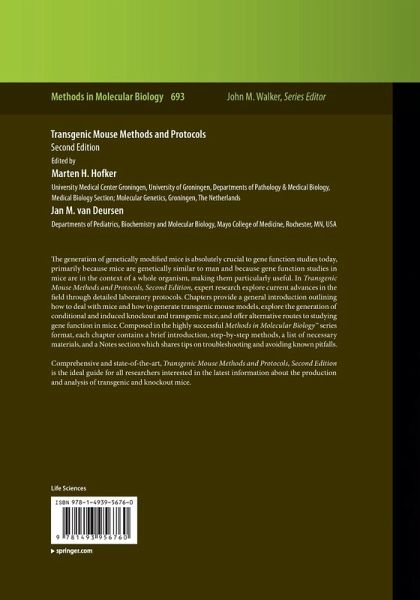 "Provided us with the valuable second edition of Transgenic mouse ... . A great merit of this book is then the fact that the two Editors decided to devote some chapters to this basic topic! ... I strongly suggest to have a copy of this book to those would like to enter the fascinating field of transgenesis; those already active in the field will anyhow surely find interesting aspects to deal with by comparing the techniques they are using with the suggested novelties here presented." (Carlo Alberto Redi, European Journal of Histochemistry, Vol. 55, 2011)