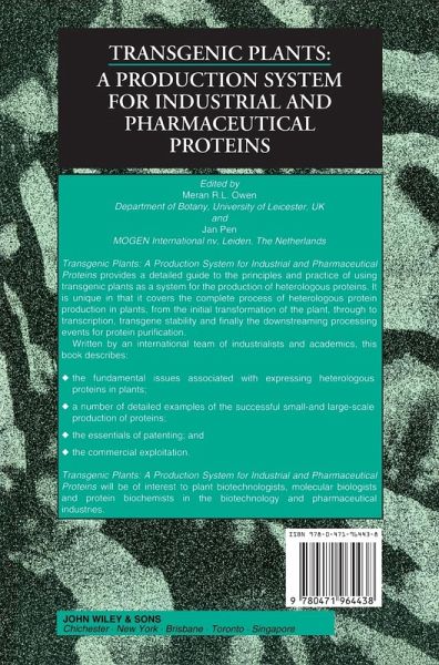 Transgenic Plants: A Production System for Industrial and Pharmaceutical Proteins provides a detailed guide to the principles and practice of using transgenic plants as a system for the production of heterologous proteins. It is unique in that it covers the complete process of heterologous protein production in plants, from the initial transformation of the plant, through to transcription, transgene stability and finally the downstreaming processing events for protein purification. Written by an international team of industrialists and academics, this book describes: * the fundamental issues associated with expressing heterologous proteins in plants; * a number of detailed examples of the successful small-and large-scale production of proteins; * the essentials of patenting; and * the commercial exploitation. Transgenic Plants: A Production System for Industrial and Pharmaceutical Proteins will be of interest to plant biotechnologists, molecular biologists and protein biochemists in the biotechnology and pharmaceutical industries.