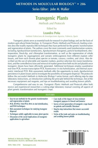 The aim of Transgenic Plants: Methods and Protocols is to provide a source of information to guide the reader through a wide range of frequently used, broadly applicable, and easily reproducible techniques involved in the gene- tion of transgenic plants. Its step-by-step approach covers a series of methods for genetically transforming plant cells and tissues, and for recovering whole transgenic plants from them. The volume then moves on to the use of sele- able and reporter markers, positive selection, marker elimination after rec- ery of transgenic plants, and the analysis of transgene integration, expression, and localization in the plant genome. Although contributors usually refer to model plants in most chapters, the protocols described herein should be widely applicable to many plant species. The last two sections are devoted to me- ods of risk assessment and to exploring the current and future applications of transgenic technology in agriculture and its social implications in a case study. Transgenic Plants: Methods and Protocols is divided into six major s- tions plus an introduction, comprising 27 chapters. Part I, the Introduction, is a review of the past, present, and perspectives of the transgenic plants, from the discovery of Agrobacterium tumefaciens as a feasible transformation vector, to its use as a tool to study gene expression and function, and the current and possible future applications of this technology in agriculture, industry, and medicine.