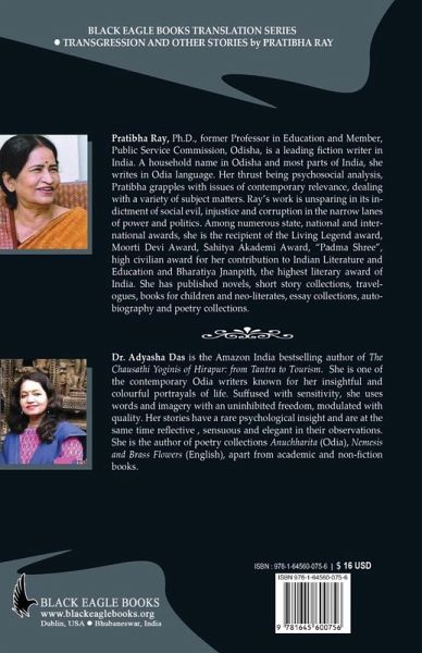 Dr. Pratibha Ray's collection of stories, Transgression and Other Stories has fifteen unique stories surfing between tradition and modernity, pathos and poignant reflections to make it a stimulating collection. Pratibha, as a story teller inhabits a world which is solid, holistic and suffused with different colours of life. In this collection, stories 'The Curse" and "The Ketaki Grove" have received New Delhi's Katha Award. "Salvation" received the best regional feature film award and Transgression, the Sahitya Akademi award.