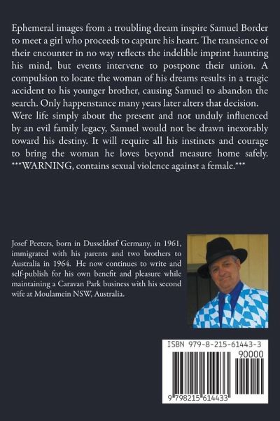 Ephemeral images from a troubling dream inspire Samuel Border to meet a girl who proceeds to capture his heart. The transience of their encounter in no way reflects the indelible imprint haunting his mind, but events intervene to postpone their union. A compulsion to locate the woman of his dreams results in a tragic accident to his younger brother, causing Samuel to abandon the search. Only happenstance many years later alters that decision. Were life simply about the present and not unduly influenced by an evil family legacy, Samuel would not be drawn inexorably toward his destiny. It will require all his instincts and courage to bring the woman he loves beyond measure home safely. ***WARNING, contains sexual violence against a female.***
