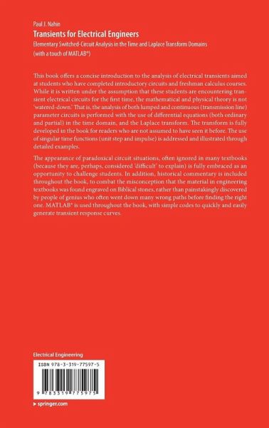The appearance of paradoxical circuit situations, often ignored in many textbooks (because they are, perhaps, considered 'difficult' to explain) is fully embraced as an opportunity to challenge students. In addition, historical commentary is included throughout the book, to combat the misconception that the material in engineering textbooks was found engraved on Biblical stones, rather than painstakingly discovered by people of genius who often went down many wrong paths before finding the right one. MATLAB® is used throughout the book, with simple codes to quickly and easily generate transient response curves.