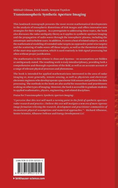 "The monograph is an excellent reference for anyone who is interested in the mathematical theory of transionospheric synthetic aperture imaging. This book is a delightful source of elegant and powerful ideas, packed with mathematical gems and far-reaching applications. It fills a major gap in the literature and will be useful to students and practitioners alike for many years to come. We highly recommend this book." (Alex Mahalov and Austin McDaniel, Mathematical Reviews, Decemeber, 2017)