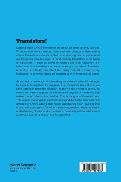 Current leading-edge CMOS transistors are about as small as they will get. We now have a simple, clear, very physical understanding of how these devices function, but it has not yet entered our textbooks. Besides, CMOS logic transistors, power transistors are increasingly important as are III-V heterostructure transistors for high-frequency communication. Transistor reliability is also important but rarely treated in introductory textbooks. As we begin a new era, in which making transistors smaller will no longer be a major driving force for progress, it is time to look back at what we have learned in transistor research. Today we see a need to convey as simply and clearly as possible the essential physics of the device that makes modern electronics possible. That is the goal of these lectures. This volume rearranges the familiar topics and distills the most essential among them, while adding most recent approaches which have become crucial to the discussion. To follow the lectures, readers need only a basic understanding of semiconductor physics. Familiarity with transistors and electronic circuits is helpful, but not assumed.