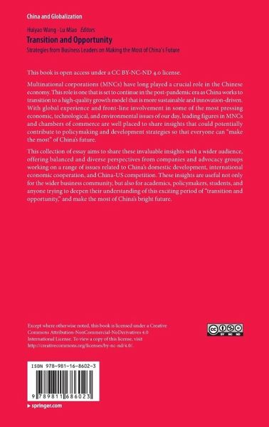 This book is open access under a CC BY-NC-ND 4.0 license. Multinational corporations (MNCs) have long played a crucial role in the Chinese economy. This role is one that is set to continue in the post-pandemic era as China works to transit to a high-quality growth model that is more sustainable and innovation-driven. With global experience and front-line involvement in some of the most pressing economic, technological, and environmental issues of our day, leading figures in MNCs and chambers of commerce are well placed to share insights that could potentially contribute to policymaking and…mehr