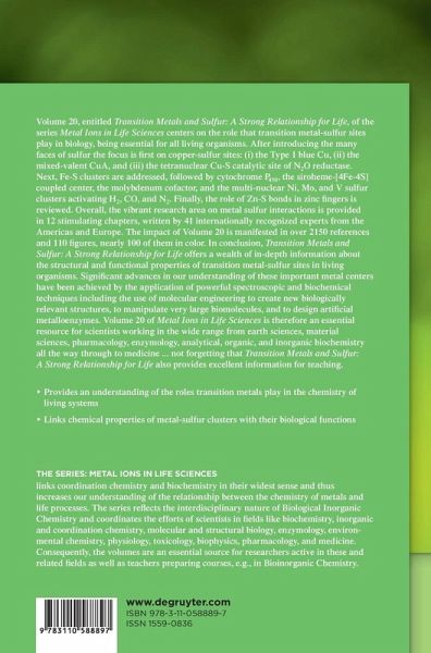 "Overall, the authors and editors have undoubtedly accomplished a remarkable achievement in producing such an excellent survey of many essential but otherwise highly diverse bioinorganic transition metal systems under the general heading of coordination to the unique bioelement sulfur." Wolfgang Kaim in: Journal of Inorganic Biochemistry 210/2020, 111153, https://doi.org/10.1016/j.jinorgbio.2020.111153
