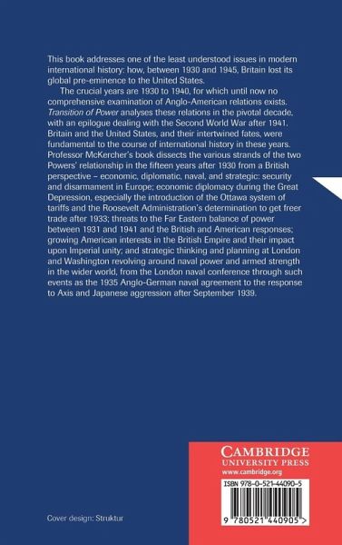 This book addresses one of the least understood issues in modern international history: how, between 1930 and 1945, Britain lost its global pre-eminence to the United States. The crucial years are 1930 to 1940, for which until now no comprehensive examination of Anglo-American relations exists. Transition of Power analyses these relations in the pivotal decade, with an epilogue dealing with the Second World War after 1941. Britain and the United States, and their intertwined fates, were fundamental to the course of international history in these years. Professor McKercher's book dissects the various strands of the two powers' relationship in the fifteen years after 1930 from a British perspective - economic, diplomatic, naval and strategic.