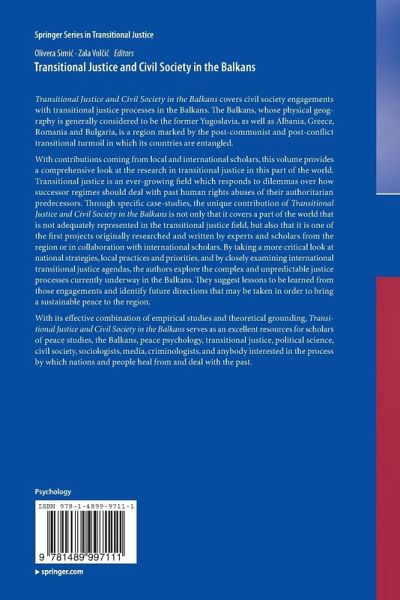 Transitional Justice and Civil Society in the Balkans covers civil society engagements with transitional justice processes in the Balkans. The Balkans are a region marked by the post-communist and post-conflict transitional turmoil through which its countries are going through.