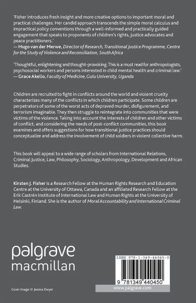 Thoughtful, enlightening and thought-provoking. This is a must read for anthropologists, psychosocial workers and persons interested in child mental health and criminal law.' - Grace Akello, Faculty of Medicine, Gulu University, Uganda 'Fisher introduces fresh insight and more creative options to important moral and practical challenges. Her candid approach transcends the simple moral calculus and impractical policy conventions through a well informed and practically guided engagement that speaks to proponents of children's rights, justice advocates and peace practitioners.' - Hugo van der Merwe, Director of Research, Transitional Justice Programme, Centre for the Study of Violence and Reconciliation, South Africa JV