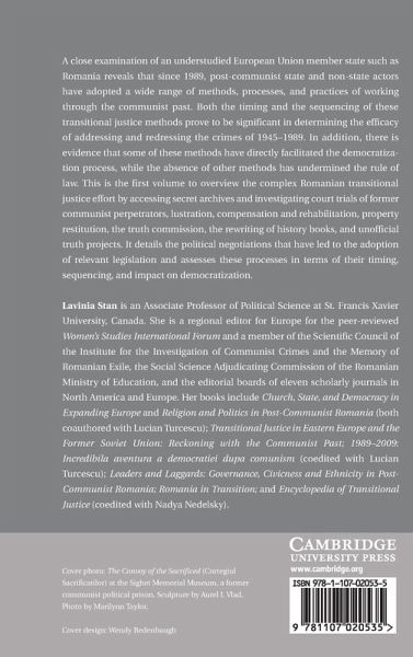A close examination of an understudied European Union member state such as Romania reveals that, since 1989, post-Communist state and non-state actors have adopted a wide range of methods, processes and practices of working through the Communist past. Both the timing and the sequencing of these transitional justice methods prove to be significant in determining the efficacy of addressing and redressing the crimes of 1945 to 1989. In addition, there is evidence that some of these methods have directly facilitated the democratization process, while the absence of other methods has undermined the rule of law. This is the first volume to overview the complex Romanian transitional justice effort by accessing secret archives and investigating court trials of former Communist perpetrators, lustration, compensation and rehabilitation, property restitution, the truth commission, the rewriting of history books, and unofficial truth projects.