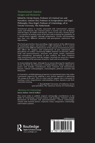 This book goes further than providing a legal analysis of the effectiveness of transitional justice and presents a wider perspective. It is a critical appraisal of the different dimensions of the process of transitional justice that affects the imagery and constructions of past experiences and perceptions of conflict. Examining hidden histories of atrocities, public trials and memorialization, processes and rituals, artistic expressions and contradictory perceptions of past conflicts, the book constructs what transitional justice and the imagery involved can mean for a better understanding of the processes of justice, truth and reconciliation.