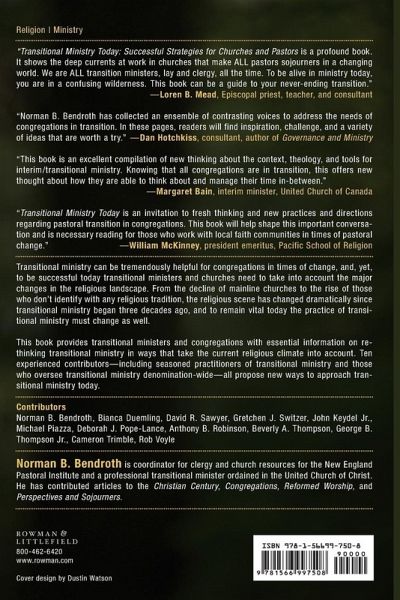 Transitional ministry can be tremendously helpful for congregations in times of change, and yet, to be successful today transitional ministers and churches need to take into account the major changes in the religious landscape. From the decline of mainline churches to the rise of those who don't identify with any religious tradition, the religious scene has changed dramatically since transitional ministry began three decades ago, and to remain vital today, the practice of transitional ministry must change as well. This book provides transitional ministers and congregations with essential information on re-thinking transitional ministry in ways that take the current religious climate into account. Ten experienced authors-including seasoned practitioners of transitional ministry and those who oversee transitional ministry denomination-wide-propose new ways to approach transitional ministry today. Chapters address practical theology, leadership, specialized interim situations, renewal during interim time, alternative models of transitional ministry, and more. Essays address a range of diverse churches in size, racial/ethnic background, and location. Transitional Ministry Today highlights how creative and cutting-edge ministry can be done during the "in-between-time" through creative thinking and practice in the face of new realities