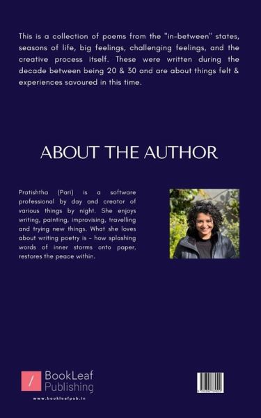 This is a collection of poems from the "in-between" states, seasons of life, big feelings, challenging feelings, and the creative process itself. These were written during the decade between being 20 & 30 and are about things felt & experiences savoured in this time.