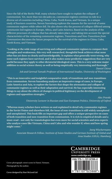 Since the fall of the Berlin Wall, many scholars have sought to explain the collapse of communism. Yet, more than two decades on, communist regimes continue to rule in a diverse set of countries including China, Cuba, North Korea, and Vietnam. In a unique study of fourteen countries, Steven Saxonberg explores the reasons for the survival of some communist regimes while others fell. He also shows why the process of collapse differed among communist-led regimes in Europe, Africa, and Latin America. Based on the analysis of the different processes of collapse that has already taken place, and taking into account the special characteristics of the remaining communist regimes, Transitions and Non-Transitions from Communism discusses the future prospects for the survival of the regimes in China, Cuba, North Korea, and Vietnam.