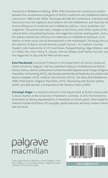 1. Introduction: Transitions and cultural formations; Kate Macdonald, Ghent University, and Christoph Singer 2. What people really read in 1922: If Winter Comes, the bestseller in the annus mirabilis of modernism; Kirsten MacLeod 3. Public gains and literary goods: a coeval tale of Conrad, Kipling and Francis Marion Crawford; Simon Frost 4. 'To-day has never been 'highbrow'': middlebrow, modernism, and the many faces of To-day; Louise Kane 5. Domesticating modern art: Charles Marriott (1869-1957) and the art of middlebrow criticism; Rebecca Sitch 6. 'Sentiment wasn't dead': anti-modernism in John Galsworthy's The White Monkey; Alison Hurlburt 7. HG Wells'The Sea Lady and the siren call of the middlebrow; Emma Miller 8. Scottish modernism, Kailyard, and the woman at home; Samantha Walton 9. 'The most thrilling and fascinating book of the century': marketing Gustave Flaubert in late nineteenth-century Britain; Juliette Atkinson 10. Cross-channel mediations: Henry-D. Davray and British popular fiction in the Mercure de France; Birgit Van Puymbroeck 11. Middlebrow criticism across national borders: Arnold Bennett and Herman Robbers on literary taste in Britain and the Netherlands; Koen Rymenants 12. Who framed Edgar Wallace? British popular fiction and middlebrow criticism in the Netherlands'; Mathijs Sanders and Alex Rutten Bibliography Index