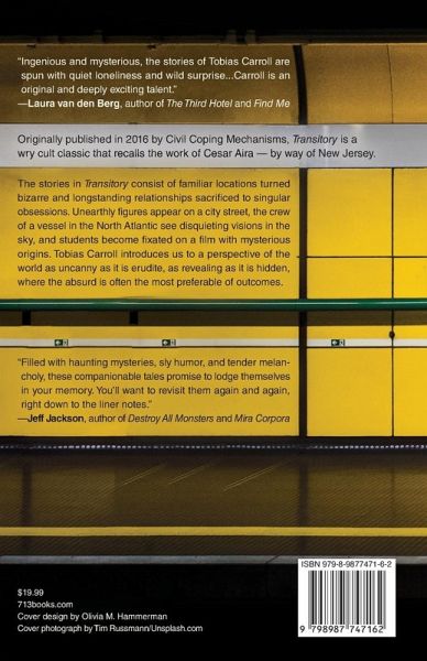 The stories in Transitory consist of familiar locations turned bizarre and longstanding relationships sacrificed to singular obsessions. Unearthly figures appear on a city street, the crew of a vessel in the North Atlantic see disquieting visions in the sky, and students become fixated on a film with mysterious origins. Tobias Carroll introduces us to a perspective of the world as uncanny as it is erudite, as revealing as it is hidden, where the absurd is often the most preferable of outcomes. Originally published in 2016 by Civil Coping Mechanisms, Transitory is a wry cult classic that recalls the work of Cesar Aira - by way of New Jersey.