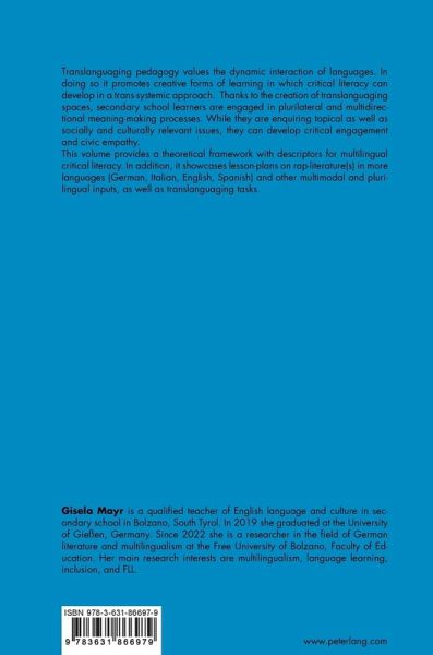The present volume provides a theoretical framework with descriptors for multilingual critical literacy. In addition, it showcases lesson-plans on rap-literature(s) in more languages (German, Italian, English, Spanish) and other multimodal and plurilingual inputs, as well as translanguaging tasks.