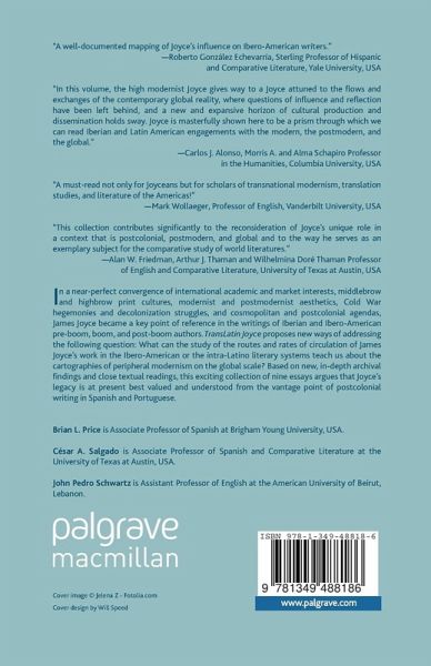 TransLatin Joyce explores the circulation of James Joyce's work in the Ibero-American literary system. The essays address Joycean literary engagements in Spain, Portugal, Argentina, Mexico, and Cuba, using concepts from postcolonial translation studies, antimodernism, game theory, sound studies, deconstruction, and post-Euclidean physics.