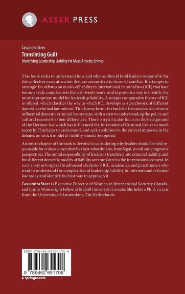 This book seeks to understand how and why we should hold leaders responsible for the collective mass atrocities that are committed in times of conflict. It attempts to untangle the debates on modes of liability in international criminal law (ICL) that have become truly complex over the last twenty years, and to provide a way to identify the most appropriate model for leadership liability. A unique comparative theory of ICL is offered, which clarifies the way in which ICL develops as a patchwork of different domestic criminal law notions. This theory forms the basis for the comparison of some influential domestic criminal law systems, with a view to understanding the policy and cultural reasons for their differences. There is a particular focus on the background of the German law which has influenced the International Criminal Court so much recently. This helps to understand, and seek a solution to, the current impasses in the debateson which model of liability should be applied.