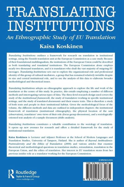Translating Institutions outlines a framework for research on translation in institutional settings, using the Finnish translation unit at the European Commission as a case study