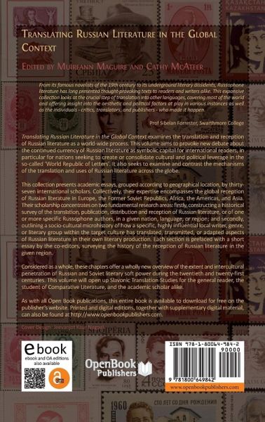 Translating Russian Literature in the Global Context examines the translation and reception of Russian literature as a world-wide process. This volume aims to provoke new debate about the continued currency of Russian literature as symbolic capital for international readers, in particular for nations seeking to create or consolidate cultural and political leverage in the so-called 'World Republic of Letters'. It also seeks to examine and contrast the mechanisms of the translation and uses of Russian literature across the globe. This collection presents academic essays, grouped according to geographical location, by thirty-seven international scholars. Collectively, their expertise encompasses the global reception of Russian literature in Europe, the Former Soviet Republics, Africa, the Americas, and Asia. Their scholarship concentrates on two fundamental research areas: firstly, constructing a historical survey of the translation, publication, distribution and reception of Russian literature, or of one or more specific Russophone authors, in a given nation, language, or region; and secondly, outlining a socio-cultural microhistory of how a specific, highly influential local writer, genre, or literary group within the target culture has translated, transmitted, or adapted aspects of Russian literature in their own literary production. Each section is prefaced with a short essay by the co-editors, surveying the history of the reception of Russian literature in the given region.Considered as a whole, these chapters offer a wholly new overview of the extent and intercultural penetration of Russian and Soviet literary soft power during the twentieth and twenty-first centuries. This volume will open up Slavonic Translation Studies for the general reader, the student of Comparative Literature, and the academic scholar alike.