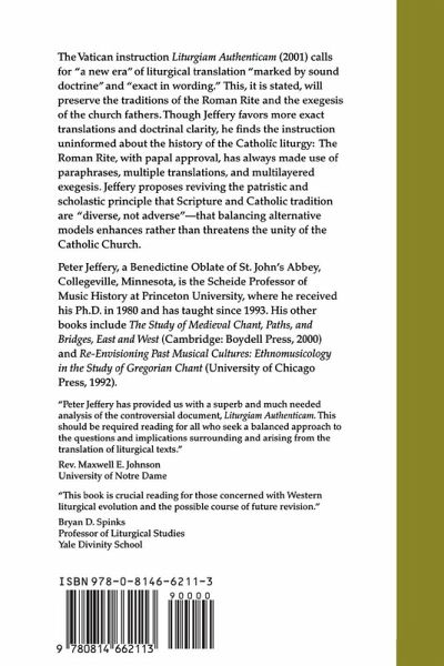 The Vatican instruction Liturgiam Authenticam (2001) calls for "a new era" of liturgical translation "marked by sound doctrine: and "exact in wording." This, it is stated, will preserve the traditions of the Roman Rite and the exegesis of the church fathers. Though Jeffery favors more exact translations and doctrinal clarity, he find the instruction uninformed about the history of the Catholic liturgy: The Roman Rite, with papal approval, has always made use of paraphrases, multiple translations, and multilayered exegesis. Jeffery proposes reviving the patristic and scholastic principle that Scripture and Catholic tradition are "diverse, not adverse" - that balancing alternative models enhances rather than threatens the unity of the Catholic Church.