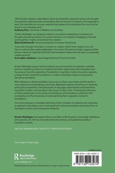 Kirsten Malmkjà r argues that translating can and should be considered a valuable art form.This work proposes a complete rethinking of the concepts of creativity and originality, as applied to translation and is vital reading for advanced students and researchers in translation studies and comparative literature.